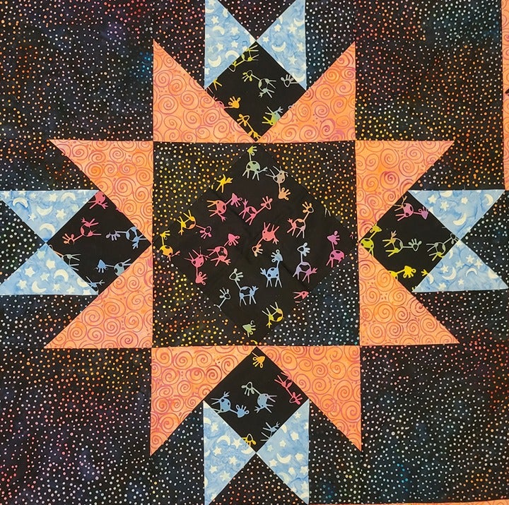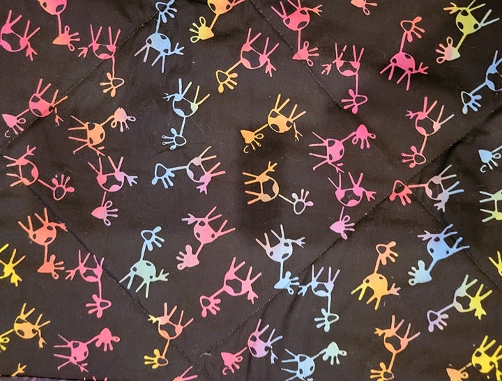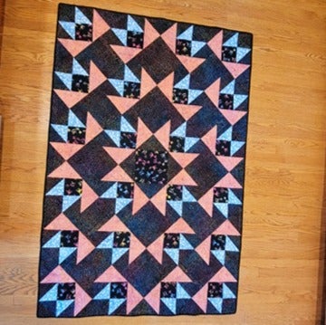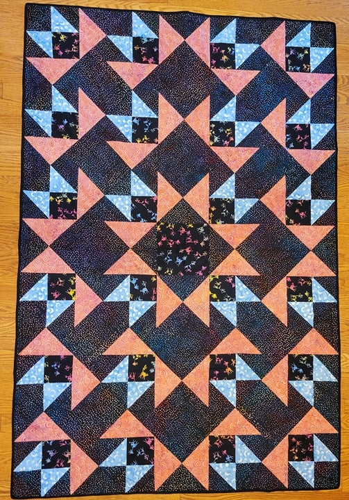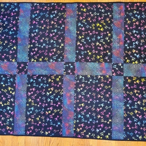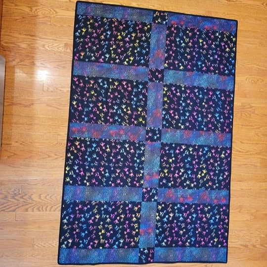 This NEW quilt is handmade with 100% cotton fabrics. Measuring 48" x 70". This one of a kind quilt is machine pieced and machine quilted using black thread and is quilted using the "stitched in the ditch" method. This art piece is perfect as a throw blanket for your couch or as a gift for a loved one. Smoke free home.