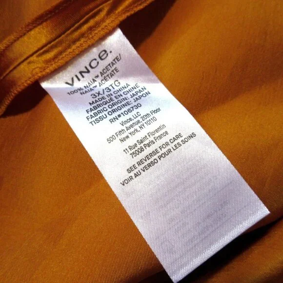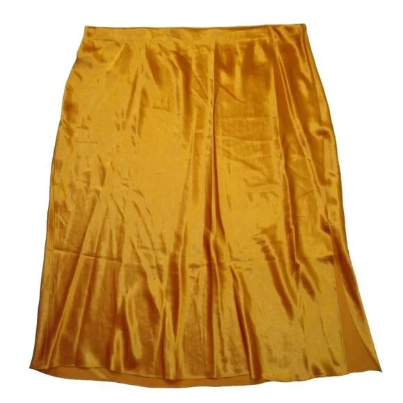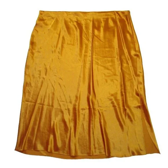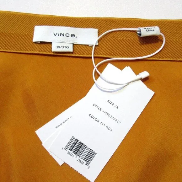 Up for purchase today is...Designer: VinceSize: 3XFit: Please do not go by size number but rather check measurements listed below to determine if the item will fit.Color: Gold Sap (orange)Style/Design #: VI890230667Material: 100% acetateDetails: * Cut from lustrous Japanese satin, a modern slip skirt features a side slit for added movement. This silky slip skirt is made from satin with a beautiful, lustrous finish. A-line silhouette. Elasticized waist. Cut below the knee. Subtle flared hem. Side zip. Unlined. Hand wash. Imported. *Condition: New with tagsRetail: $295Measurements:Waist (aligned) - 46 ½"Hips - 62"Length - 36"
