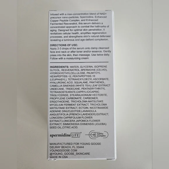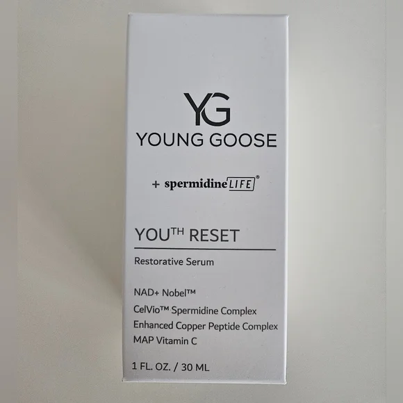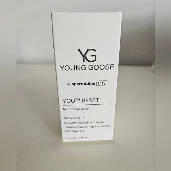 NWT YOUNG GOOSE Skin Longevity Serum | SZ 1 FL OZ - Unleash Your Skin's Youthful Potential with YOUTH RESET - Comprehensive Anti-Aging • Cellular Regeneration • Deep Nourishment.Good for anyone looking to combat multiple signs of aging and restore skin's youthful vigor.A luxurious, lightweight serum that seamlessly integrates into your skincare routine.New In Box - never used