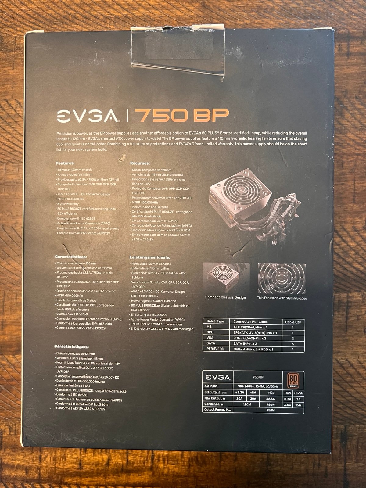 EVGA - 750 BP, 80+ BRONZE 750W Power Supply (Model: 100-BP-0750-K1)
