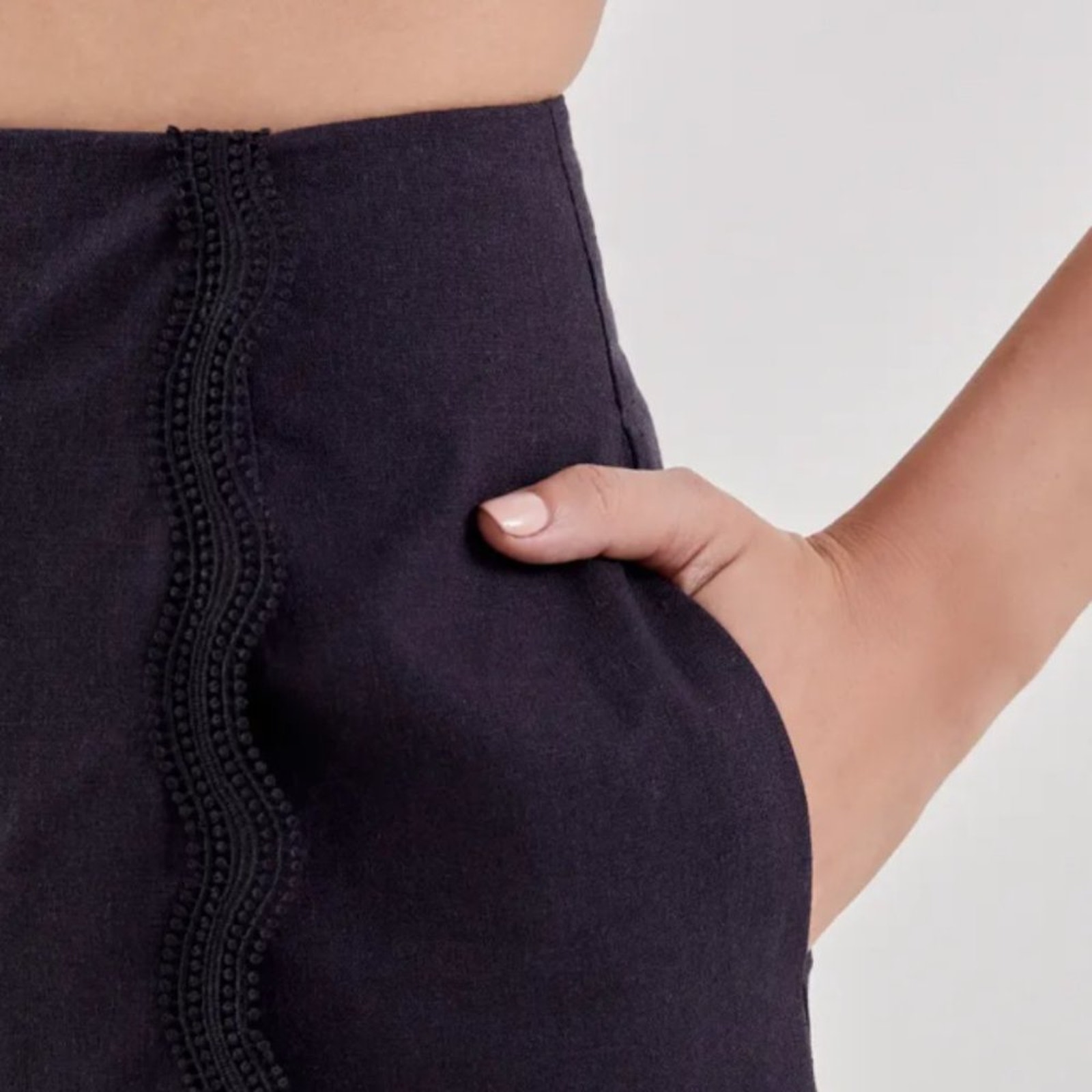 Add a touch of elegance to your wardrobe with these lightweight Love Bonito scallop skorts. Designed with an A-line silhouette, functional side pockets, and a back zip closure, these skorts are stylish and practical for all-day wear. The scalloped detailing enhances the feminine charm, making them perfect for casual outings or running errands.