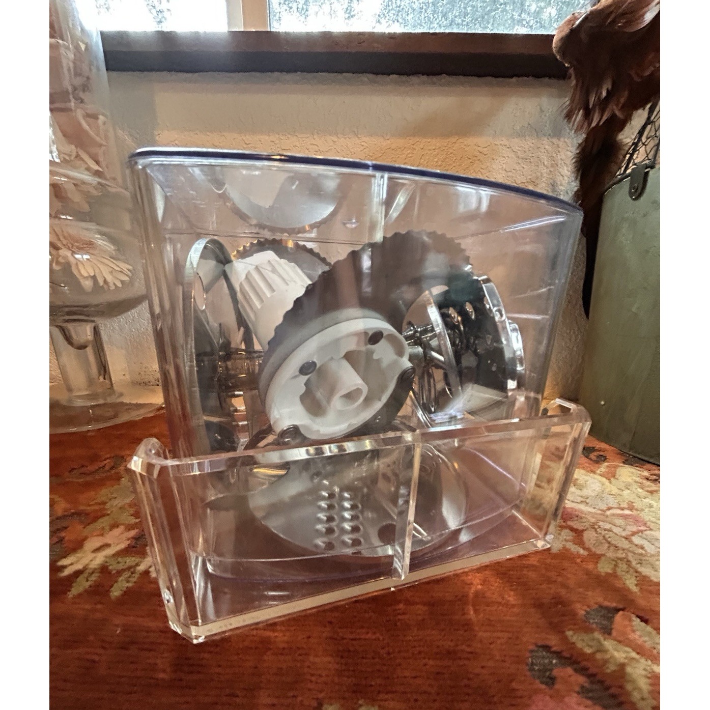 Acrylic storage box with acrylic base holder. Base holder 8" x 7" x7"