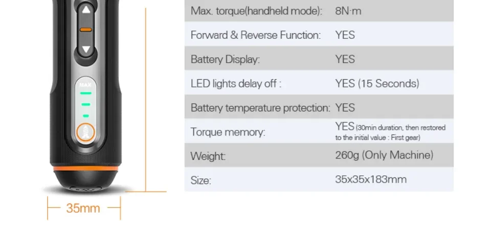 -Thin body, one handed operation, comfortable grip