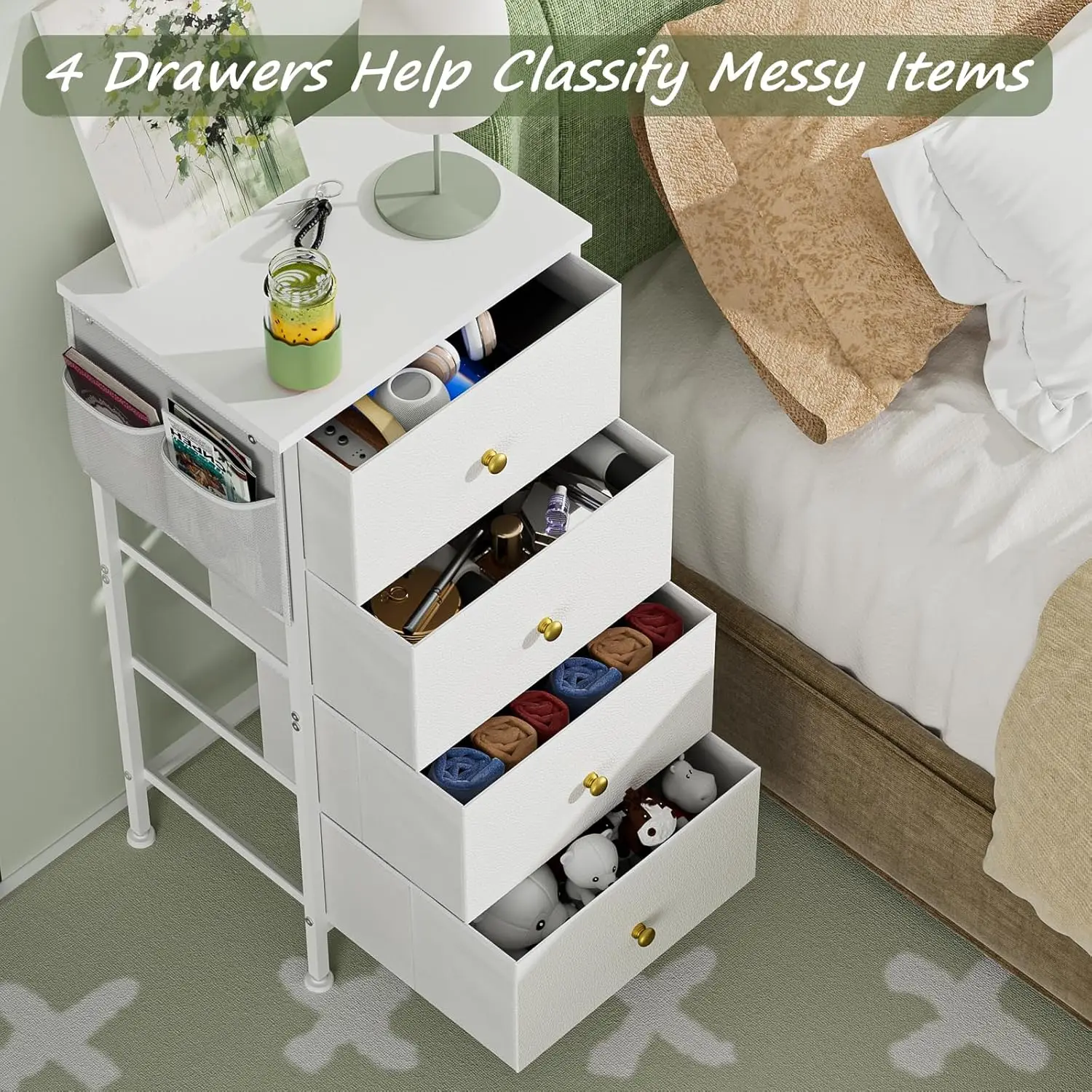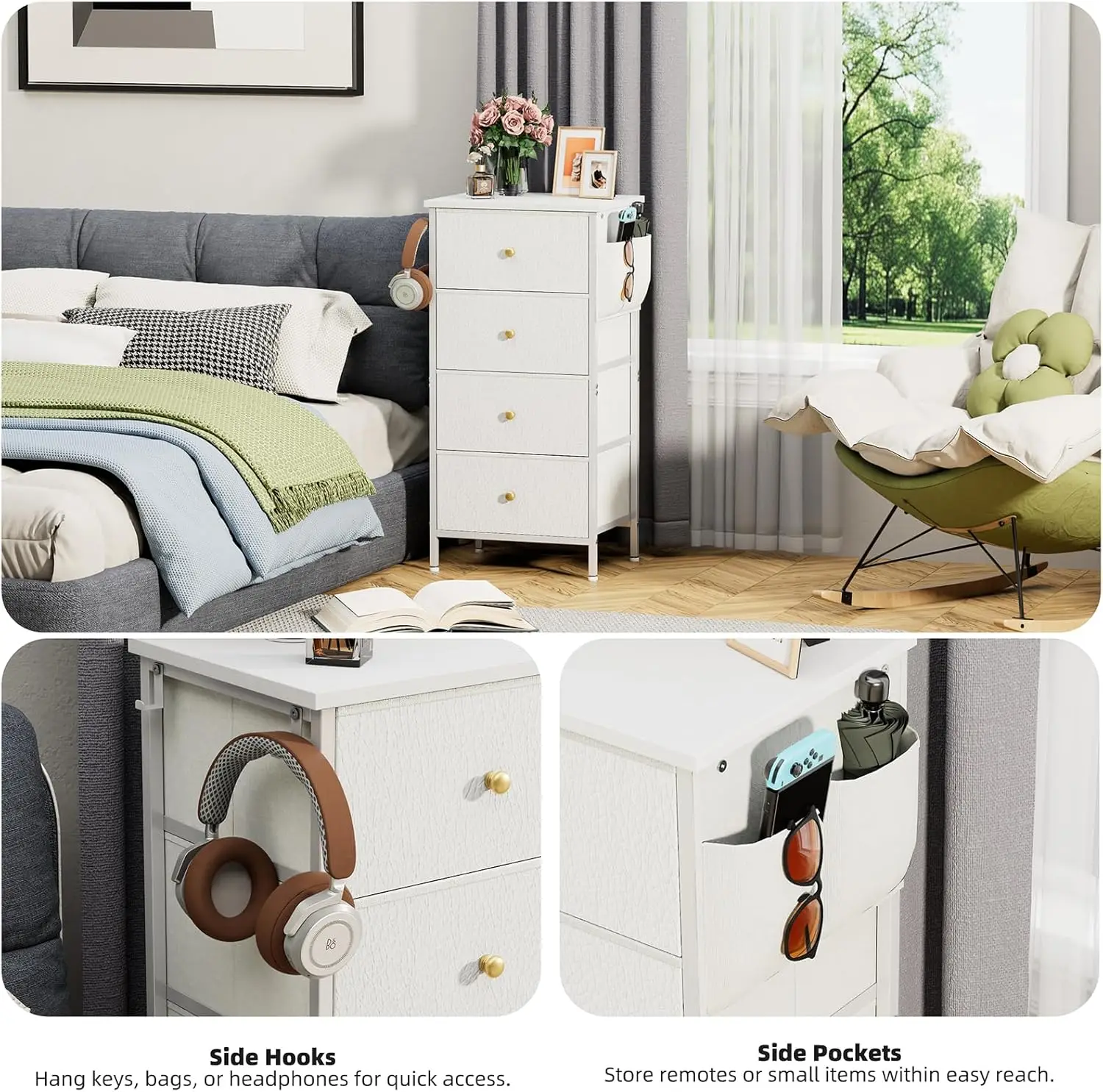 Tall Dresser with 5 Drawers, White Dresser for Bedroom, Tall Storage Tower for Closet, Nursery, Dorm, Dresser Organizer with Sturdy Steel Frame, Fabric Bins, Leather Finish, Wood Top, White