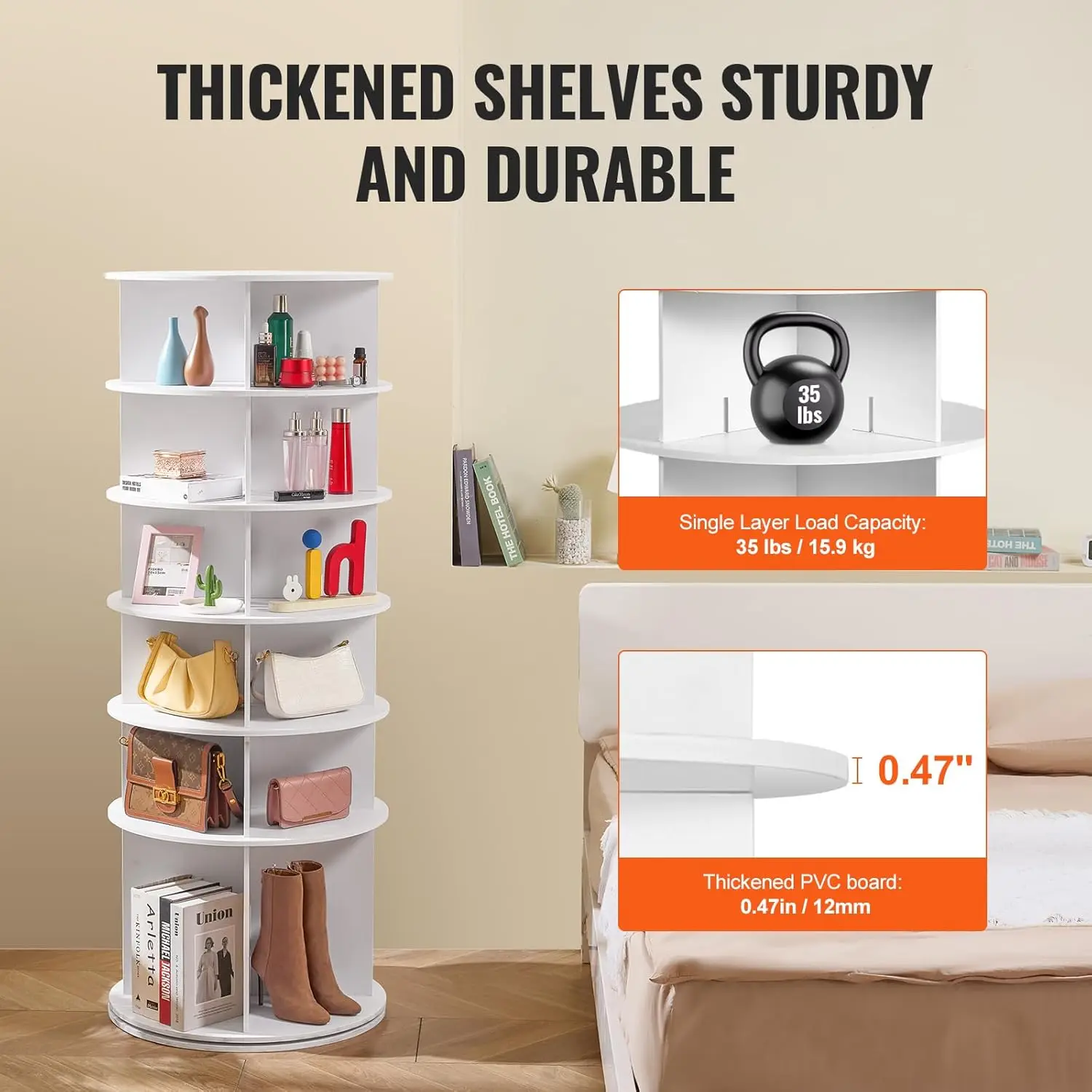- Thickened Shelves: This rotating shoe organizer is built to last. Each shelf can hold up to 35 lb/15.9 kg, so you can store heavier items without worry.