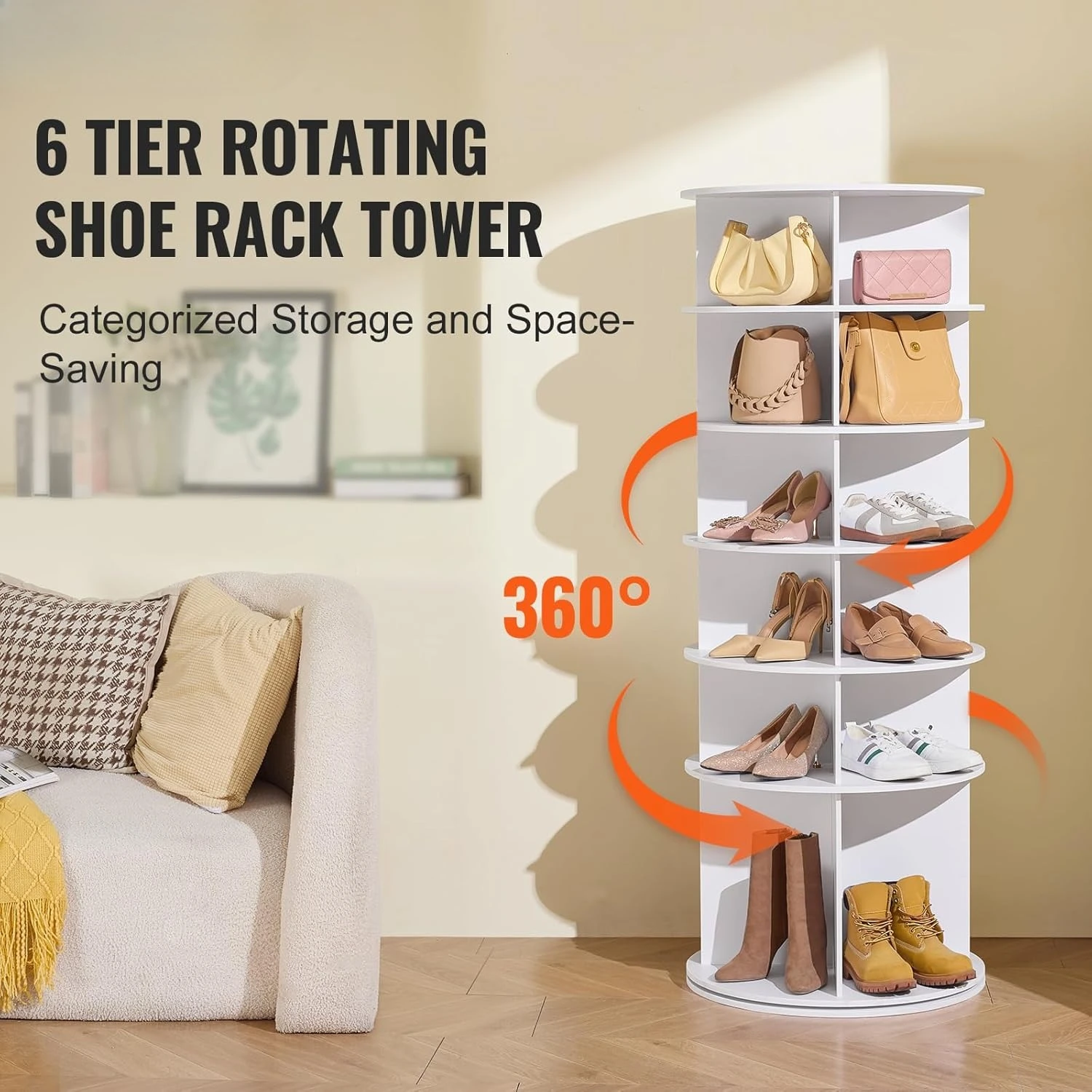 - 【360° Rotation】This 6-tier rotating shoe rack combines smart storage with easy access, so you can organize and display your shoes neatly and easily. Its 360° rotating design makes grabbing your shoes quick and easy, while adding a sleek, rotating touch to your space.