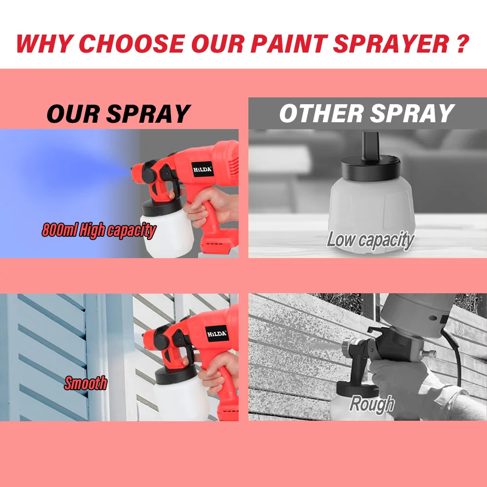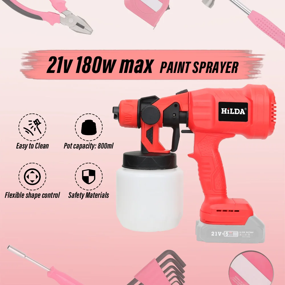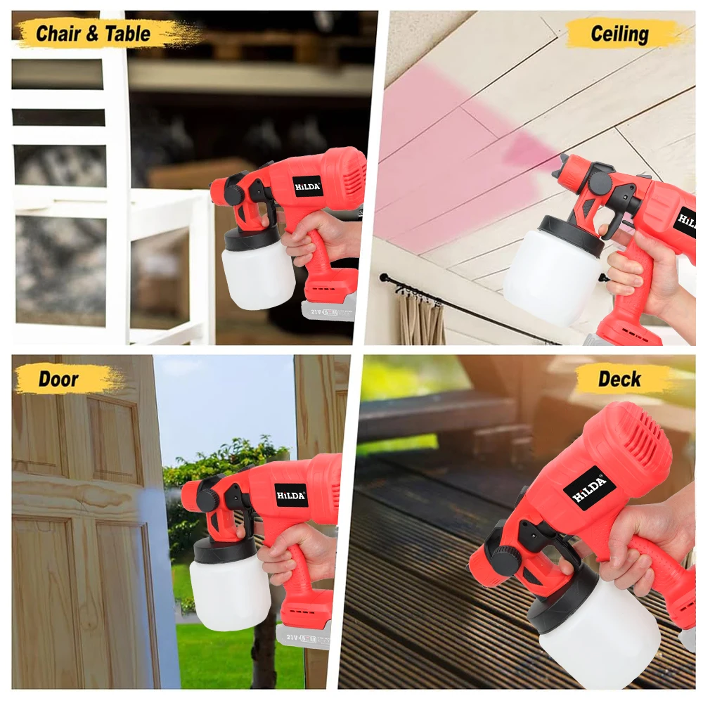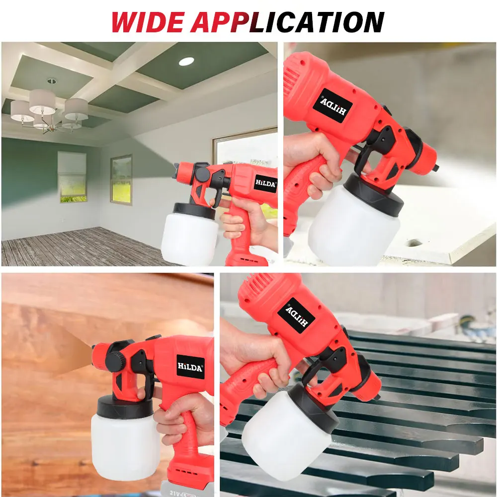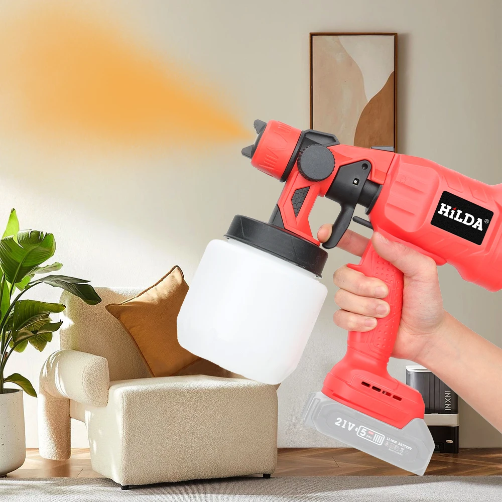HILDA 1500W Electric Cordless Spray Gun HVLP Paint Sprayer For Dewalt 21V Furniture Coating Airbrush