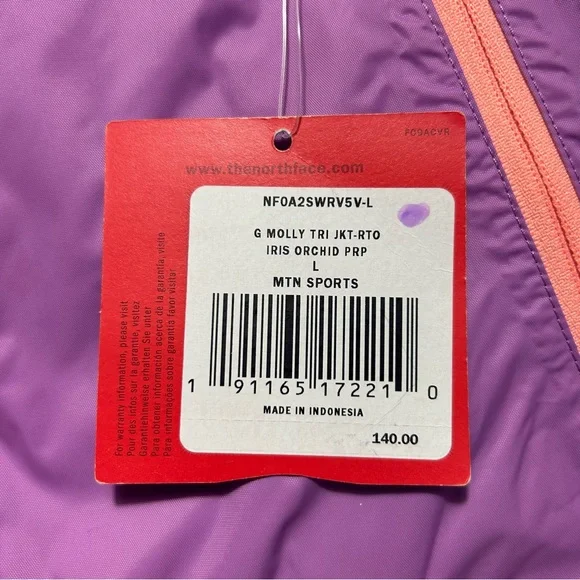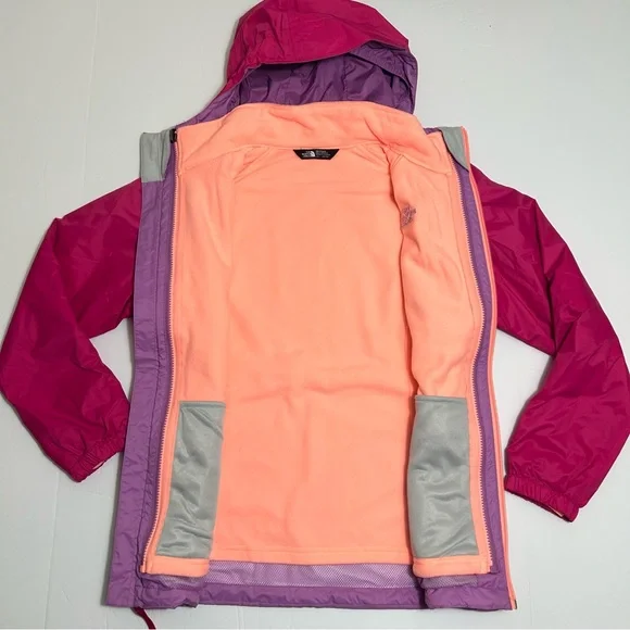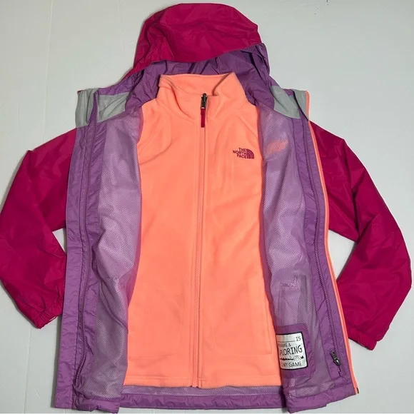 THE NORTH FACE GIRLS MOLLY TRICLIMATE JACKET**Price is FIRM****Price is FIRM**NO OFFERS! TY!Brand new with tagsRetails for $140! 3-in-1 jacket system features a lightweight, waterproof DryVent shell & a super soft fleece liner jacket for ultimate versatility. Wear separately or together as the weather permits. Youth Girls' size L (14/16)Measurements of shell while laying flat:L - armpit to armpit: 19"; shoulder to bottom hem: 25"Iris Orchid Purple (pink & purple outer shell with a gorgeous peach orange inner jacket)• [Outer jacket] - Embroidered logo on front and upper back• Lightweight, waterproof and fully seam sealed to keep the elements at bay• Zip-in-compatible integration with complementing garments from The North Face• Attached hood• Zip hand warmer pockets• Elastic cuffs• Hem cinch-cord• ID label for customization• [Inner jacket] - Embroidered logo on front• Cozy soft fleece• Zips into outer jacketSmoke & pet free home