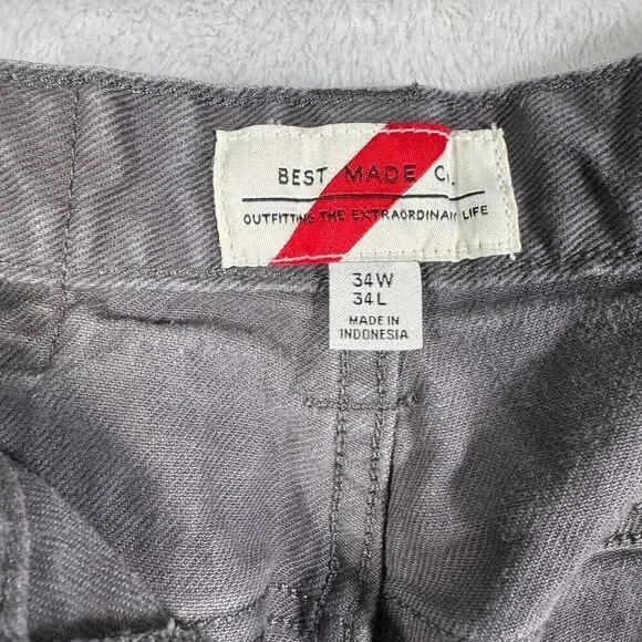 Best Made Co Jeans Mens 34x34 (Fits 32x32) Gray Slim Straight Denim ShrunkenPants Tag says 34x34 But Pants Measured at 32x32I will ship this item out via USPS Ground Advantage with a tracking number for confirmationI ship items out Monday-Friday, so expect a quick delivery. Please feel free to ask any questions you may have