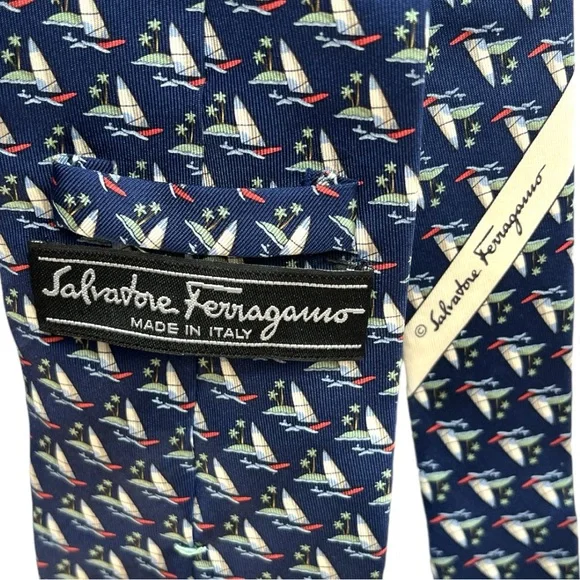 Salvatore Ferragamo Sailboat and Island of Palm Trees Tie Navy BlueGently wornMeasures approx 60 inches long 4 5/8 inches at its widest Career, office, work, careerwear, date night, night out, gift for him, Father's Day, gift for dad, gift for grandpa, gift for brother, gift for son, gift for uncle, gift for husband, gift for spouse, gift for boyfriend, necktie, tie, mensfashion, ties, menswear, fashion, menstyle, neckties, dapper, suitandtie, pocketsquare, style, sartorial, mensstyle, bowtie, suitup, suit, handmade, gentleman, suits, men, accessories, necktiestyle, bespoke, cravatte, cravatta, dandy, sartorialist, suited, pocketsquares, mnswr, cufflinks, bespokesuit, dapperstyle, ootd, silktie, luxury, kravat, gentlemanstyle, dapperday, welldressed, tailored, debonair, mensuit, outfit, mensfashionpost, outfitgoals, silk, sprezzaotura, fashionstreet, gqinsider, tailoredsuit, suitedbooted, womeninties, outfitgrid, gq, mensaccessories, tieporn, bowtiesarecool, fashionguys, date night, night out, mensfashion, menswear, fashion, menstyle, style, sartorial, mensstyle, gentleman, men, accessories, dapperday, fashionguys, gentlemenstyle, church, temple, beach theme, vacation theme, vacation vibes