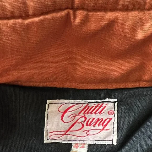 SUNDAZED & OUTSIDE SOCIETY | exotic vintage, novelty in actionS.O.S. | sundazed.io/sosBrand: Chitti BangOrigin: GermanyVintage (no flaws)Look: Idealization through Actions Directed by Thought, Manifested in the Works of Fine ArtDepartment: UnisexTag: 42Fabric Type: CanvasShell: PolyesterLining: PolyesterPattern: SolidStyle: QuiltedType: JacketLength: ShortSleeve Length: Long SleeveClosure: ZipFeatures: Full Zip, PocketsInsulation: PolyesterMeasurements (cm):Chest: 55Length: 69Shoulder: 44Sleeve: 62Hem: 54SKU: 006816